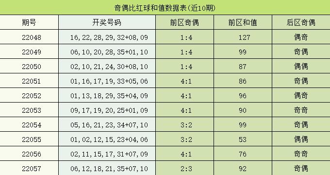 奇偶分析:在大乐透前30期红球中,奇偶比为85:65,上期红球奇偶比为4:1,本期预计奇偶比为3:2。